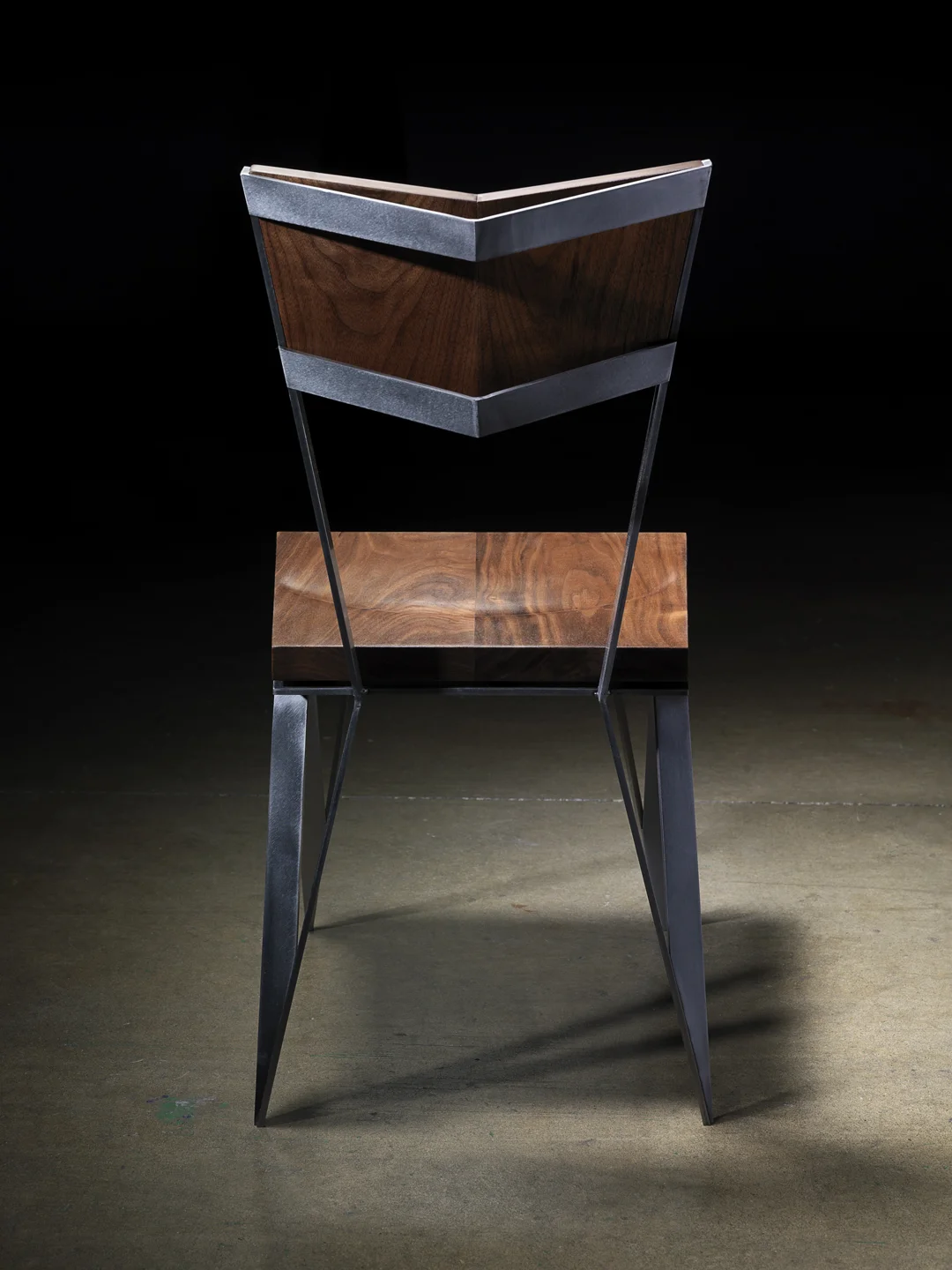 The Jennings is a response to a deceptively simple call: to create a beautiful place to eat. The geographic chevron was a key inspiration of this custom set, which consists of a dining table and six matching chairs. Repeated in the natural folds and fractions of stones of all sizes, its ability to imprint a history of physical changes in the landscape has always fascinated me. I sought to translate the chevron’s visual resonance into sculptural elements that would tie all the aspects of a dining set together, giving it an elegant and ergonomic dimensionality.